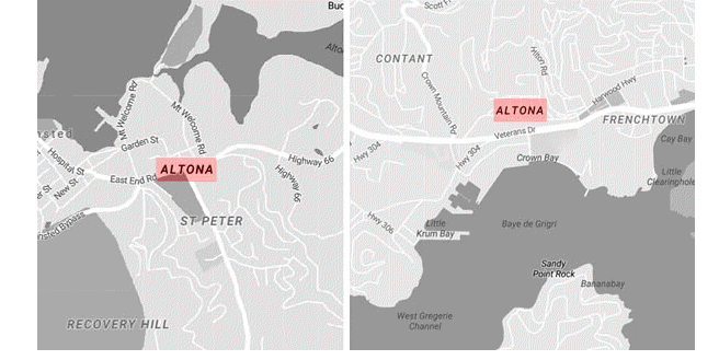 The Altona/Germany based colonial merchants left vestiges in the Caribbean: "Altona" is the name of a city district in Christiansted in St. Croix as well as in Charlotte Amalie in St. Thomas where also a street is called "Altona".